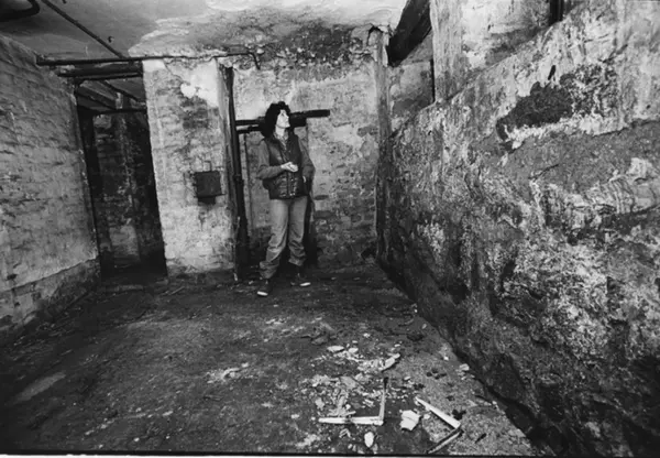 Kvinne i kjelleren i Hegdehaugsveien 18. Forfallen bygård. Fotografiet er fra prosjektet og boka ''Oslo-bilder. En fotografisk dokumentasjon av bo og leveforhold i 1981 - 82''. Kontakt Samfoto ved ev. bestilling av kopier.