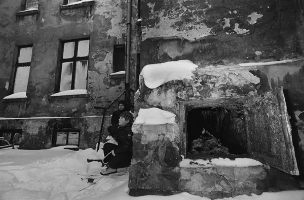 Med bakgården som lekeplass. Bildet er publisert på s. 50 - 51 i boken Oslo-bilder. Åpen luke til klaskedosjakta. Fotografiet er fra prosjektet og boka ''Oslo-bilder. En fotografisk dokumentasjon av bo og leveforhold i 1981 - 82''. Kontakt Samfoto ved ev. bestilling av kopier.