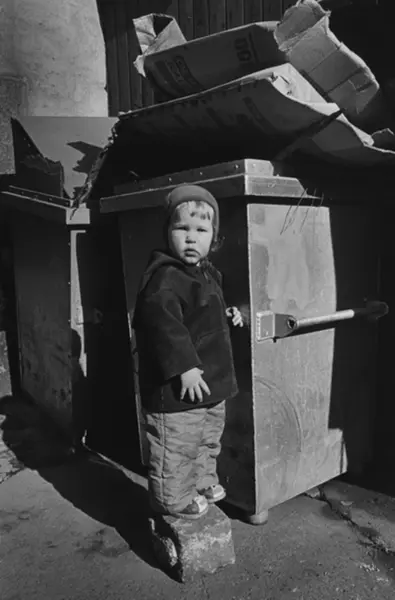Med bakgården som lekeplass. Bildet er publisert på s. 16 i boken Oslo-bilder. Fotografiet er fra prosjektet og boka ''Oslo-bilder. En fotografisk dokumentasjon av bo og leveforhold i 1981 - 82''. Kontakt Samfoto ved ev. bestilling av kopier.