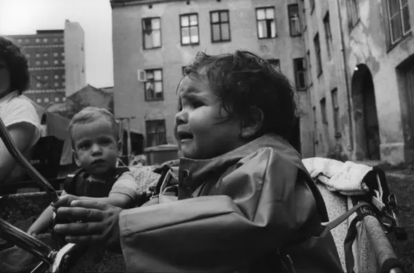 Med bakgården som lekeplass. Innvandrernes boforhold. Fotografiet er fra prosjektet og boka ''Oslo-bilder. En fotografisk dokumentasjon av bo og leveforhold i 1981 - 82''. Kontakt Samfoto ved ev. bestilling av kopier.