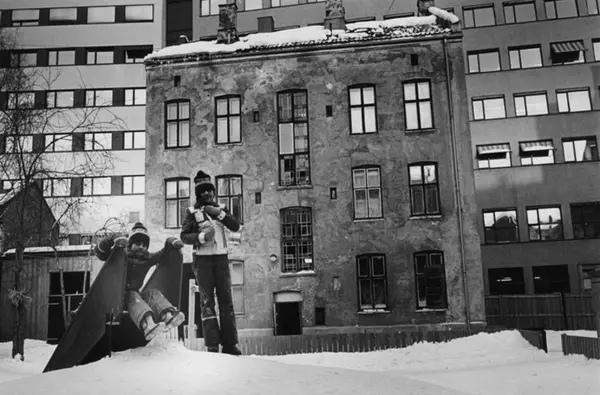 Fra lekeplassen i barnehagen i Norbygata Grønland. Januar 1982.