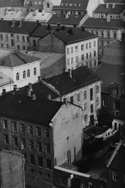 Utsikt over Tøyen fra øverste etasje på boligblokkene på Enerhaugen. Fotografiet er fra prosjektet og boka ''Oslo-bilder. En fotografisk dokumentasjon av bo og leveforhold i 1981 - 82''. Kontakt Samfoto ved ev. bestilling av kopier.
