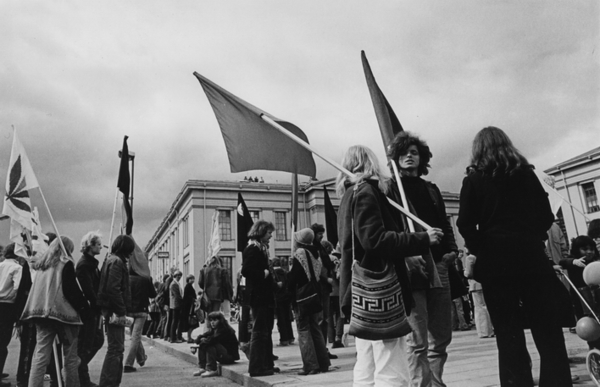 Demonstrasjonstog på Universitetsplassen på 1. mai. Fotografiet er fra prosjektet og boka ''Oslo-bilder. En fotografisk dokumentasjon av bo og leveforhold i 1981 - 82''. Kontakt Samfoto ved ev. bestilling av kopier.