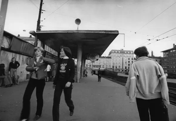 Fra perrongen på stasjonen sett mot Majorstuhuset. Fotografiet er fra prosjektet og boka ''Oslo-bilder. En fotografisk dokumentasjon av bo og leveforhold i 1981 - 82''. Kontakt Samfoto ved ev. bestilling av kopier.