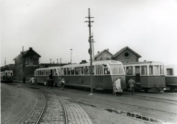 Bildet er tatt i Belgia et sted på linjene Maaseick - Tongern-linja, en av Belgias en gang så tallrike smalsporede lokalbaner. Vogna nærmest kamera ble solgt til Trondheim Sporvei i 1956.