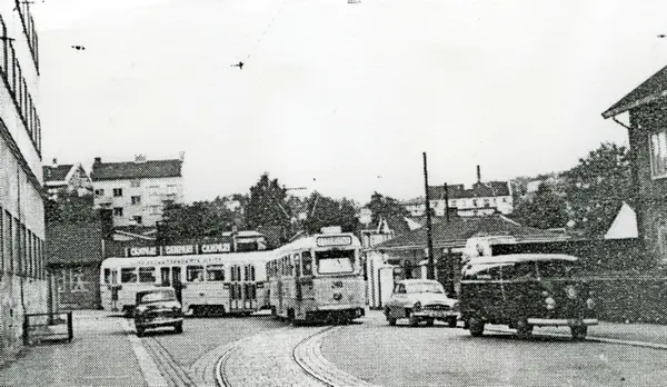 Etter 1960 var det mange trikkespor som ble tatt vekk og lagt ned. Denne Høkavognen er i ferd med å rykke inn i vognhallen på Vålerenga. Sporet var helt borte først i 1968. Fra Strømsveien, her Østerdalsgata og ned Numedalsgata og ut i Hedemarksgata til Trikkestallen.