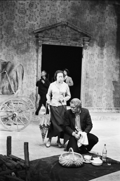 Scene fra Nationaltheaterets forestilling av Anton Tsjekhovs "Kirsebærhaven". Forestillingen hadde premiere 22. september 1971. Jan Kacer hadde regi og Lubos Hruza kostymer og scenografi.