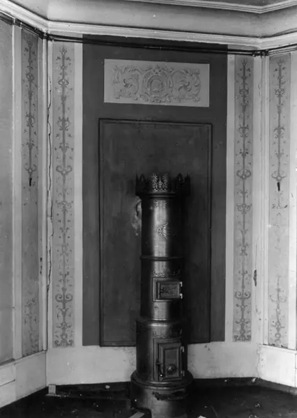 Prinsens gate 8, Oslo. Brannmur med vedovn.