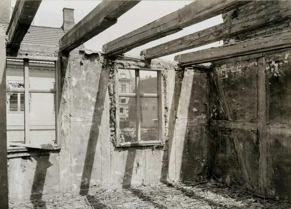 Tollbugata 14, Oslo. Hus under riving. Interiør. Nå på Norsk Folkemuseum. Håndtverkergården/Bokbindergården.