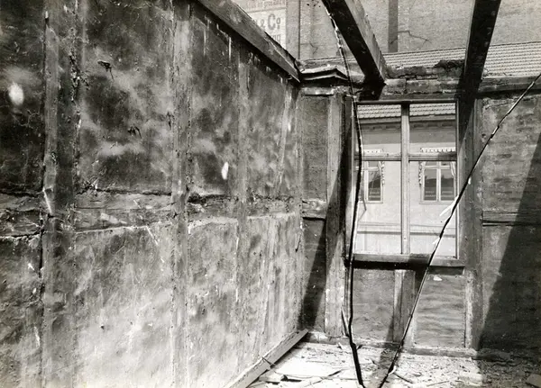 Tollbugata 14, Oslo. Hus under riving. Interiør. Nå på Norsk Folkemuseum. Håndtverkergården/Bokbindergården.