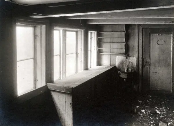 Tollbugata 14, Oslo. Hus under riving. Nå på Norsk Folkemuseum. Interiør med kjøkkenbenk. Håndtverkergården/Bokbindergården.