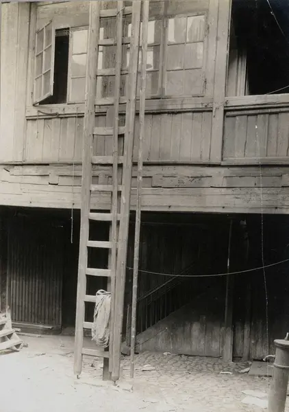 Tollbugata 14, Oslo. Hus under riving. Nå på Norsk Folkemuseum. Gårdsrommet. Håndtverkergården/Bokbindergården.