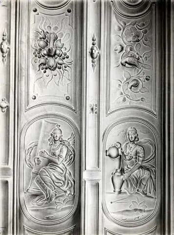 Dronningens gate 15, Oslo. Det gamle Kirkedepartement. Detalj av stukktak. Byningen er nå på Norsk Folkemuseum.