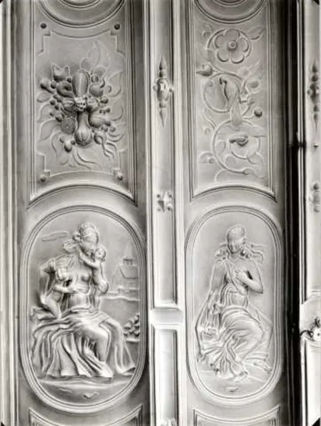 Dronningens gate 15, Oslo. Det gamle Kirkedepartement. Detalj av stukktak. Byningen er nå på Norsk Folkemuseum.