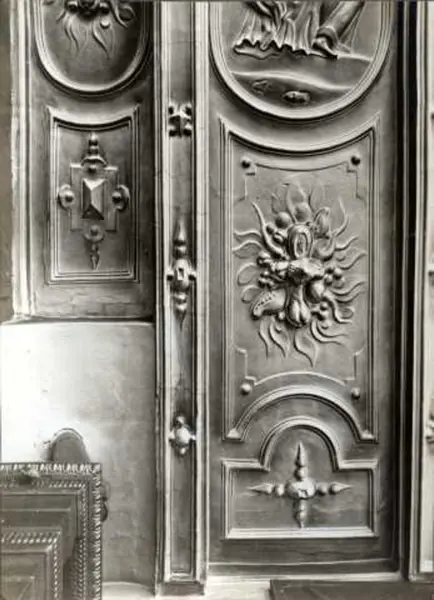 Dronningens gate 15, Oslo. Det gamle Kirkedepartement. Detalj av stukktak. Byningen er nå på Norsk Folkemuseum.