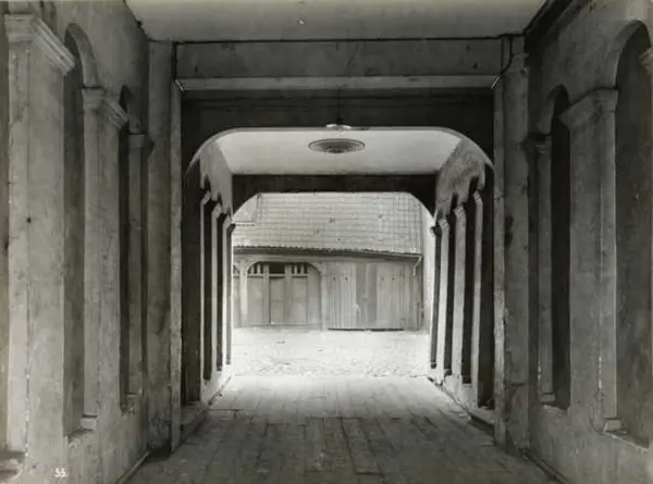 Rådhusgata 13, Oslo. Stiftsgården. Portrom mot bakgård. Stiftsgården ble revet 1913.