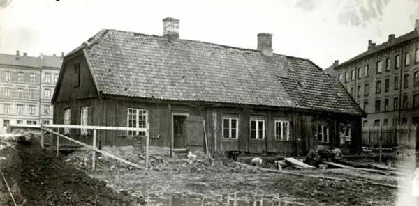 Heibergløkken, Sørligata 64, Oslo. Lavt trehus, under arbeid.