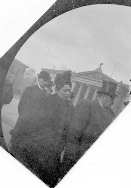Hr. Smith og frue, født Astrup utenfor Universitet på Karl Johans gate, Oslo.
