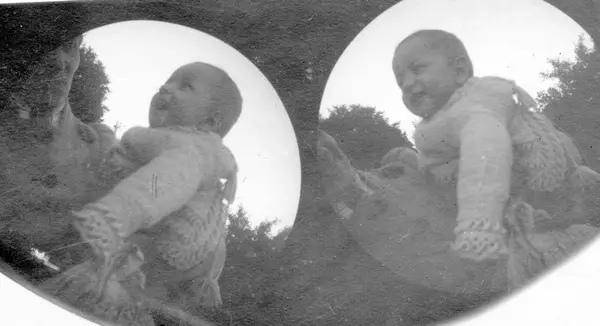 Dr. Elling Holst med datter Aagot som baby i hage.