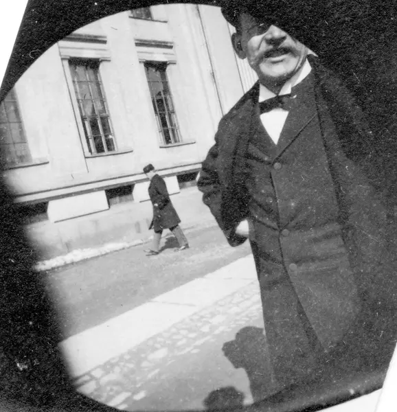 Fredrik Carl Mülertz Størmer (1874-1957) var matematiker og nordlysforsker. Han ble cand. real. i 1898. Fra 1903 var han professor i matematikk ved Universitetet i Oslo, en virksomhet han opprettholdt til 1946. Som student fikk han i 1893 tak i et detektivkamera som kunne skjules under vesten med objektivet ut gjennom et knapphull og med snor ned i en bukselomme. Slik fotograferte han folk han møtte på Karl Johan i 1890-årenes Christiania.