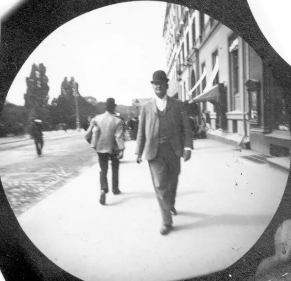 Fredrik Carl Mülertz Størmer (1874-1957) var matematiker og nordlysforsker. Han ble cand. real. i 1898. Fra 1903 var han professor i matematikk ved Universitetet i Oslo, en virksomhet han opprettholdt til 1946. Som student fikk han i 1893 tak i et detektivkamera som kunne skjules under vesten med objektivet ut gjennom et knapphull og med snor ned i en bukselomme. Slik fotograferte han folk han møtte på Karl Johan i 1890-årenes Christiania.