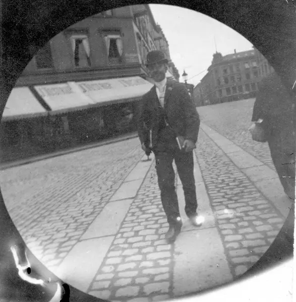 Fredrik Carl Mülertz Størmer (1874-1957) var matematiker og nordlysforsker. Han ble cand. real. i 1898. Fra 1903 var han professor i matematikk ved Universitetet i Oslo, en virksomhet han opprettholdt til 1946. Som student fikk han i 1893 tak i et detektivkamera som kunne skjules under vesten med objektivet ut gjennom et knapphull og med snor ned i en bukselomme. Slik fotograferte han folk han møtte på Karl Johan i 1890-årenes Christiania.