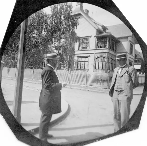 General Nissen med sin sønn Hartvig Nissen i gate foran villa.
