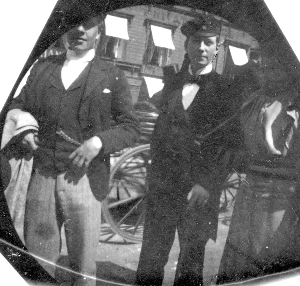 Studentene Kalle Gjerdrum, senere ved Rjukanbanen, og Koren, senere i diplomatiet, i bygate, Oslo.