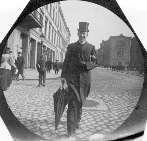 Fredrik Carl Mülertz Størmer (1874-1957) var matematiker og nordlysforsker. Han ble cand. real. i 1898. Fra 1903 var han professor i matematikk ved Universitetet i Oslo, en virksomhet han opprettholdt til 1946. Som student fikk han i 1893 tak i et detektivkamera som kunne skjules under vesten med objektivet ut gjennom et knapphull og med snor ned i en bukselomme. Slik fotograferte han folk han møtte på Karl Johan i 1890-årenes Christiania.