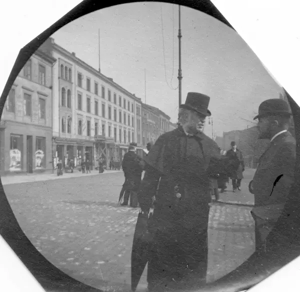 Fredrik Carl Mülertz Størmer (1874-1957) var matematiker og nordlysforsker. Han ble cand. real. i 1898. Fra 1903 var han professor i matematikk ved Universitetet i Oslo, en virksomhet han opprettholdt til 1946. Som student fikk han i 1893 tak i et detektivkamera som kunne skjules under vesten med objektivet ut gjennom et knapphull og med snor ned i en bukselomme. Slik fotograferte han folk han møtte på Karl Johan i 1890-årenes Christiania.