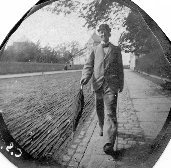 Fredrik Carl Mülertz Størmer (1874-1957) var matematiker og nordlysforsker. Han ble cand. real. i 1898. Fra 1903 var han professor i matematikk ved Universitetet i Oslo, en virksomhet han opprettholdt til 1946. Som student fikk han i 1893 tak i et detektivkamera som kunne skjules under vesten med objektivet ut gjennom et knapphull og med snor ned i en bukselomme. Slik fotograferte han folk han møtte på Karl Johan i 1890-årenes Christiania.