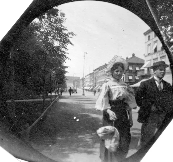 Fredrik Carl Mülertz Størmer (1874-1957) var matematiker og nordlysforsker. Han ble cand. real. i 1898. Fra 1903 var han professor i matematikk ved Universitetet i Oslo, en virksomhet han opprettholdt til 1946. Som student fikk han i 1893 tak i et detektivkamera som kunne skjules under vesten med objektivet ut gjennom et knapphull og med snor ned i en bukselomme. Slik fotograferte han folk han møtte på Karl Johan i 1890-årenes Christiania.