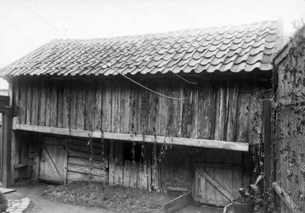 Christian Kroghsgate 48 og Slåmotgangen mellom Christian Kroghsgate og Akerselva. Oslo 1924. Uthus.