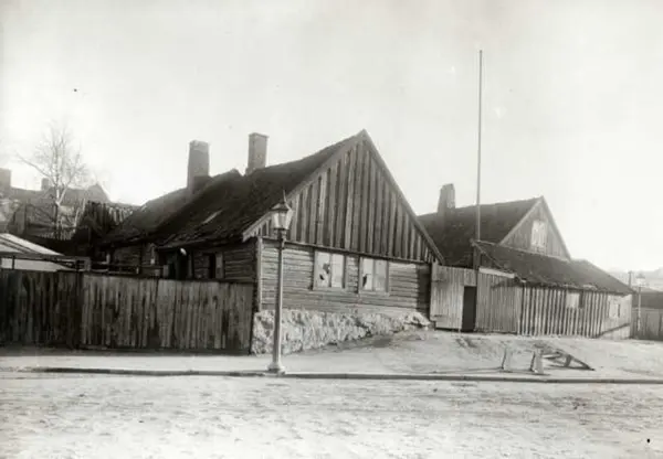 St. Halvards gate 20, Oslo. Lavt trehus sett fra gata.