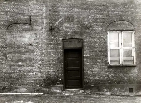 Rådhusgata 19, Oslo. Garnisonssykehuset. Vegg med vindu og dør. Nå Oslo Kunstforening.