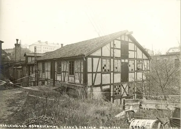 Vaagehalsen Barkestampe, Graah's Fabrikker ved Akerselva, Oslo. Bindingsverkshus.