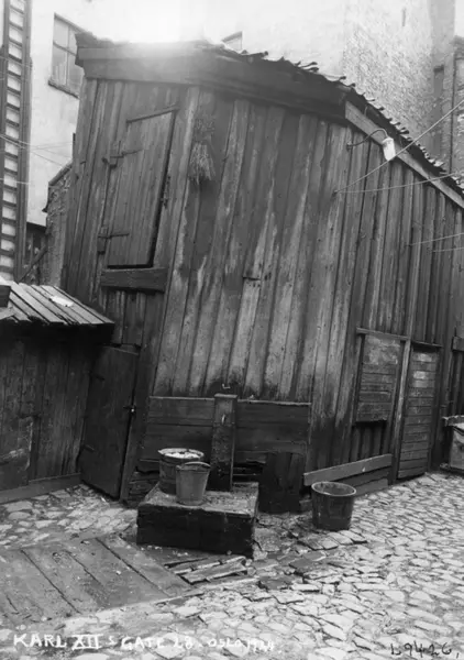 Karl XIIs gate 28, Oslo, 1924. Bakgård med uthus.