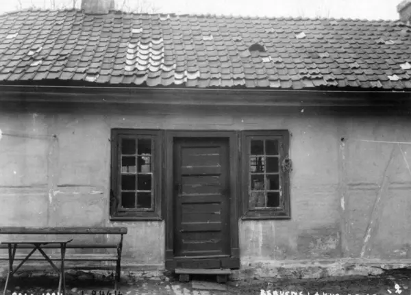 Bervens Løkke, Observatoriegata 2, Oslo 1924. Del av bygning, eksteriør, dør med sidevinduer..