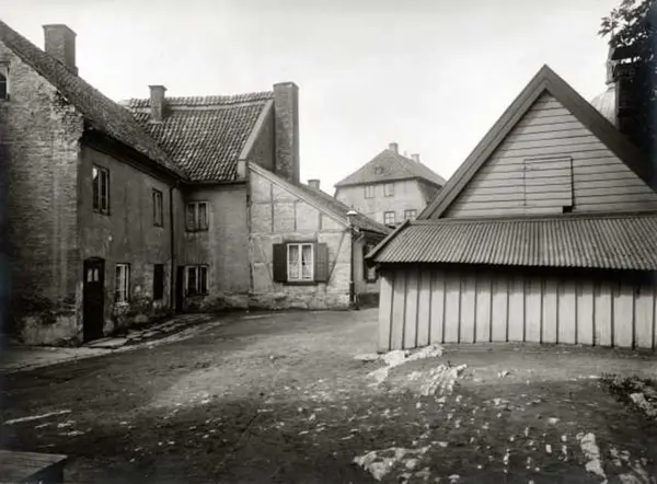 Kanten 1, Hammersborg, Oslo. Gårdsplass med gamle hus.