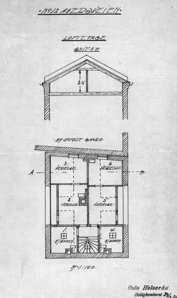 Oslo, Akersveien 12. Plantegning over bolig fra Oslo Helseråd, Boligkontoret.