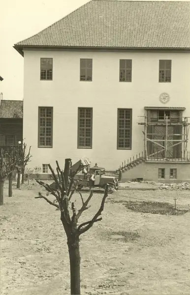 Del av hovedbygget med inngangsparti. Norsk Folkemuseum, Oslo 15. september 1936.