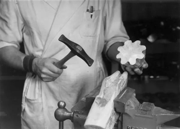 Fra en serie fotografier som viser arbeid ved gullsmedverkstedet J. Tostrup i Oslo, 1951.