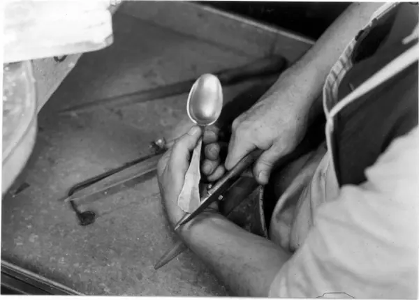 Skjearbeider i arbeid. Gullsmedverksted, J. Tostrup, Oslo.