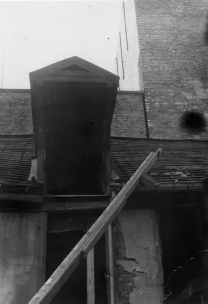 Collett/Cappelengården, Kirkegata 15, Oslo under rivingen i 1939. Bygget i slutten av 1600-tallet og kjøpt av kommerceråd James Collett i 1703. Nå på Norsk Folkemuseum.