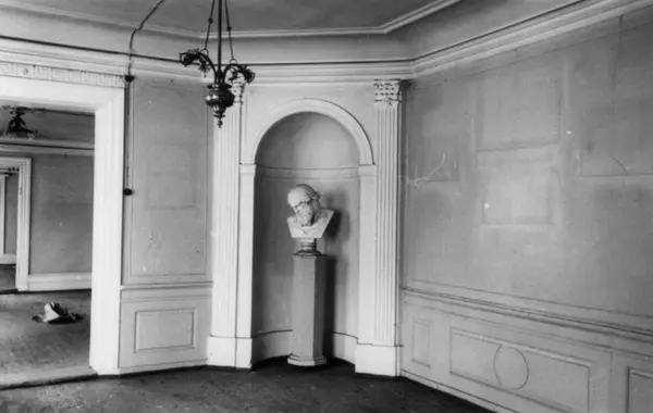 Collett/Cappelengården, Kirkegata 15, Oslo under rivingen i 1939. Bygget i slutten av 1600-tallet og kjøpt av kommerceråd James Collett i 1703. Nå på Norsk Folkemuseum.