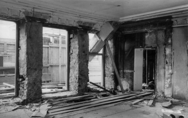 Collett/Cappelengården, Kirkegata 15, Oslo under rivingen i 1939. Bygget i slutten av 1600-tallet og kjøpt av kommerceråd James Collett i 1703. Nå på Norsk Folkemuseum.