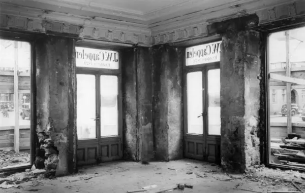 Collett/Cappelengården, Kirkegata 15, Oslo under rivingen i 1939. Bygget i slutten av 1600-tallet og kjøpt av kommerceråd James Collett i 1703. Nå på Norsk Folkemuseum.