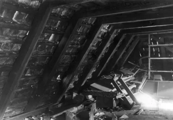 Collett/Cappelengården, Kirkegata 15, Oslo under rivingen i 1939. Bygget i slutten av 1600-tallet og kjøpt av kommerceråd James Collett i 1703. Nå på Norsk Folkemuseum.