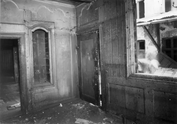 Rødfyllgata 20, Oslo 1954. Under riving. Interiør, vegger, dører og vinduer.