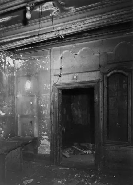 Rødfyllgata 20, Oslo 1954. Under riving. Interiør, vegger, tak og dør.